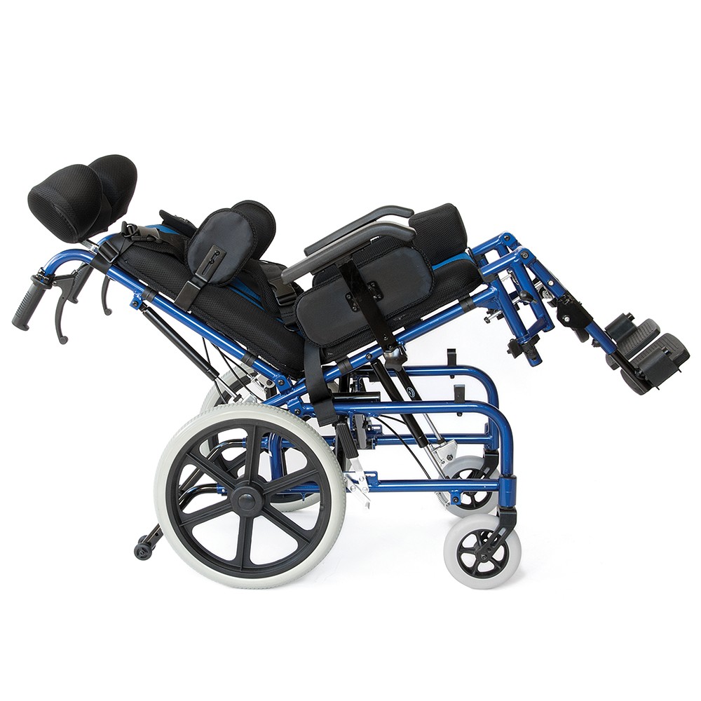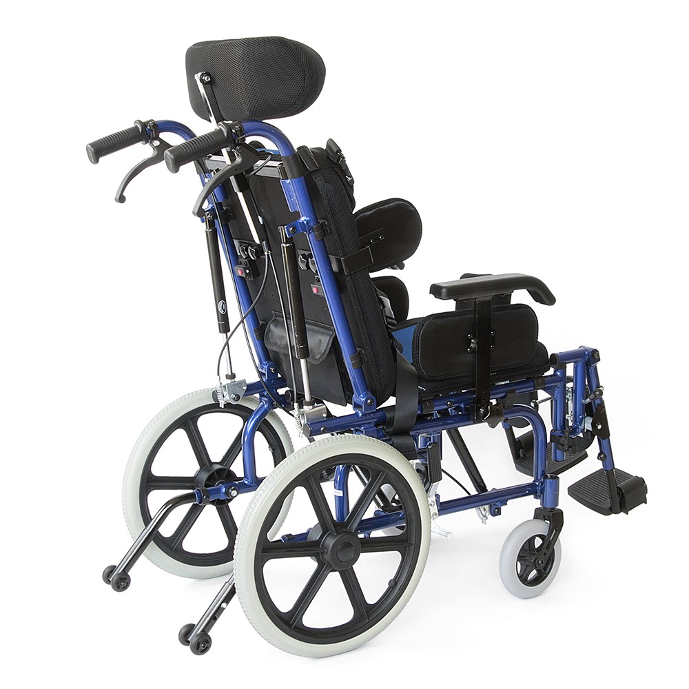 Σκελετός αλουµινίου. Ανακλινόµενη πλάτη µε υδραυλικό σύστηµα. Ανατοµικό, εύκαµπτο στήριγµα κεφαλής ρυθµιζόµενο καθ’ ύψος και διαµορφούµενο. Αφαιρούµενα πλαϊνά. Αφαιρούµενα και ανακλινόµενα υποπόδια. Ρυθµιζόµενη γωνία (“tilt”) καθίσµατος. Φρένα συνοδού και φρένα στους πίσω τροχούς. Ζώνη ασφαλείας τριών σηµείων. ∆ιαχωριστικό σκελών στο κάθισµα. Πίεστρα ακινητοποίησης πλευρών. Υποβραχιόνια ρυθµιζόµενα σε ύψος και πλάτος. Ανατοµικά µαξιλάρια στήριξης γάµπας. Ροδάκια “Αntitip”. ∆ιατίθεται σε δύο µεγέθη.