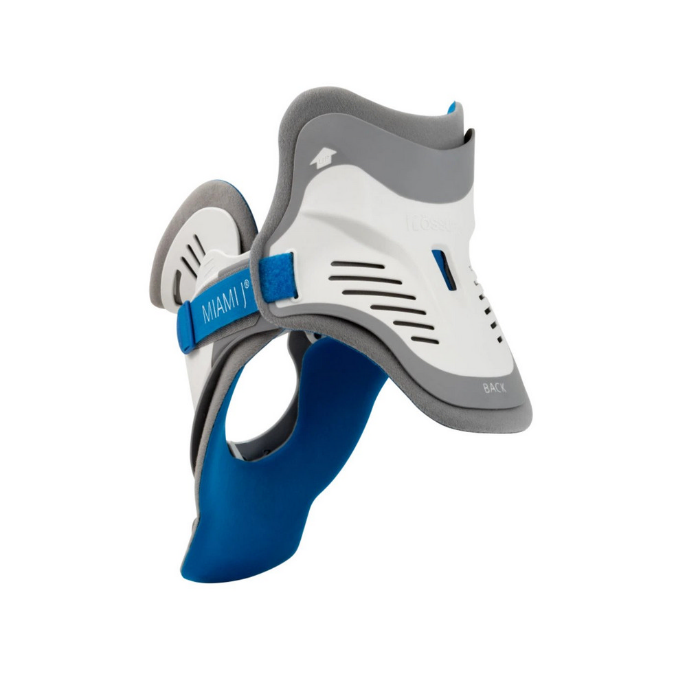 Το αυχενικό κολάρο τύπου “Miami J Select” της Ossur είναι κατασκευασμένο από πλαστικό υλικό υψηλής ποιότητας και αντοχής. Διαθέτει ευρεία τραχειακή οπή. Διαθέτει σύστημα με ειδικό μηχανισμό, που επιτρέπει τη ρύθμιση του ύψους σε επτά θέσεις επιλογής.