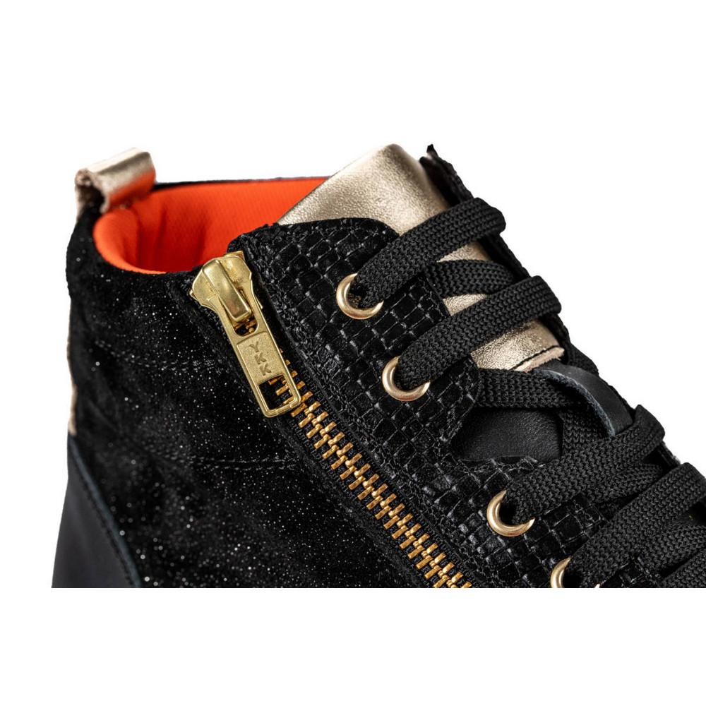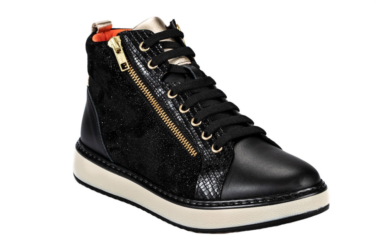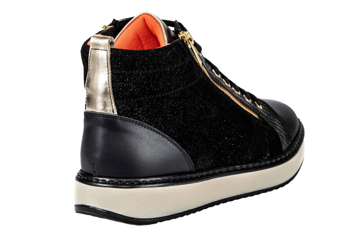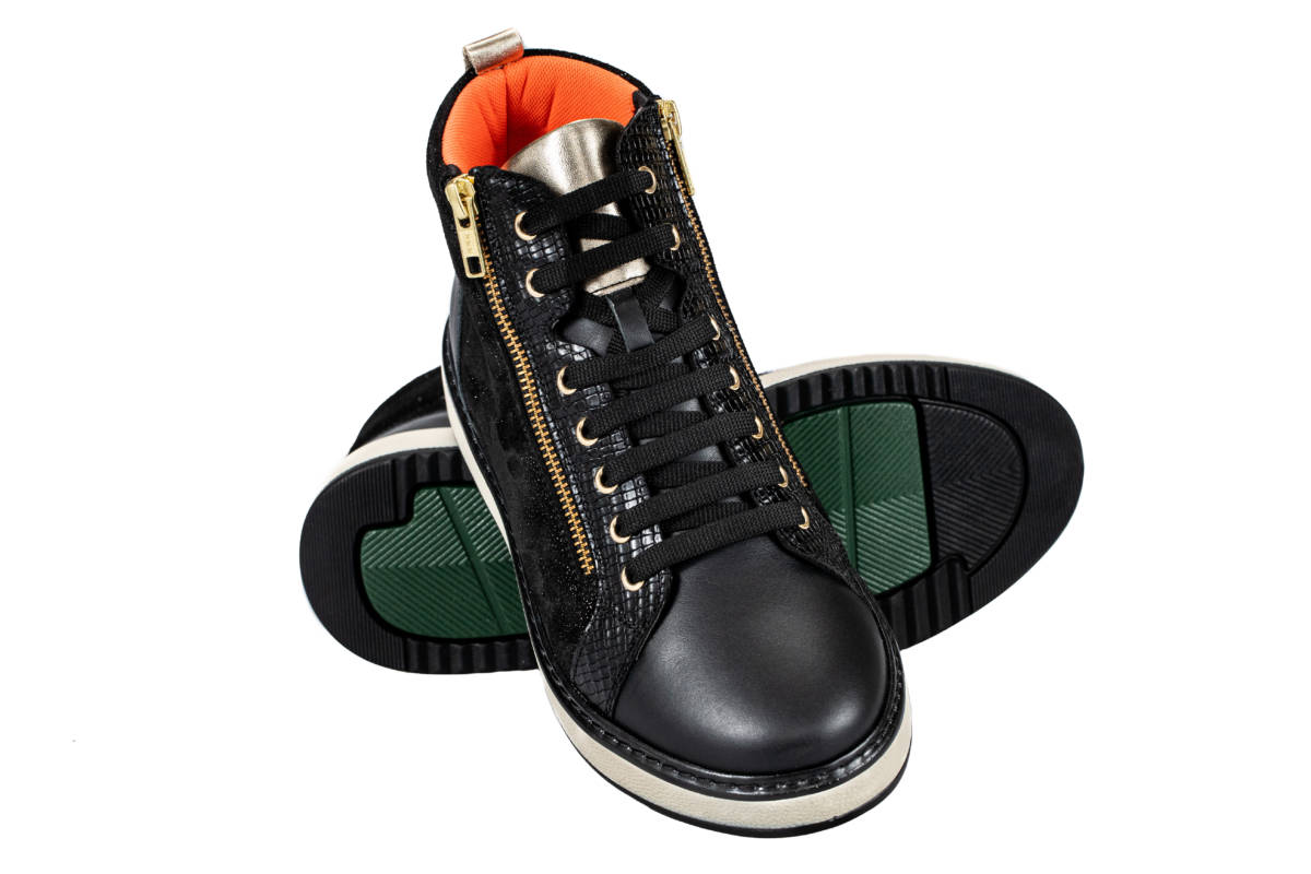 Ο σχεδιασμός του χωρίς εσωτερικές ραφές το καθιστά κατάλληλο για άτομα με παραμορφώσεις δακτύλων και ευαίσθητο δέρμα, καθώς ελαχιστοποιούνται οι τριβές. Κλείνει με αυτοκόλλητο κορδόνια και φερμουάρ.