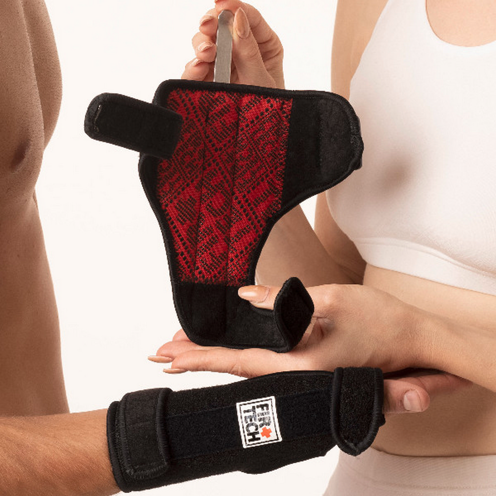 Χάρη στην μεταλλική προσθαφαιρούμενη μπανέλα που διαθέτει παρέχει τέλεια υποστήριξη στην περιοχή του καρπού και του αντίχειρα. Ο νάρθηκας μπορεί να φορεθεί και στα δύο χέρια, ανάλογα με την πάσχουσα περιοχή, καθώς είναι αμφιδέξιος.