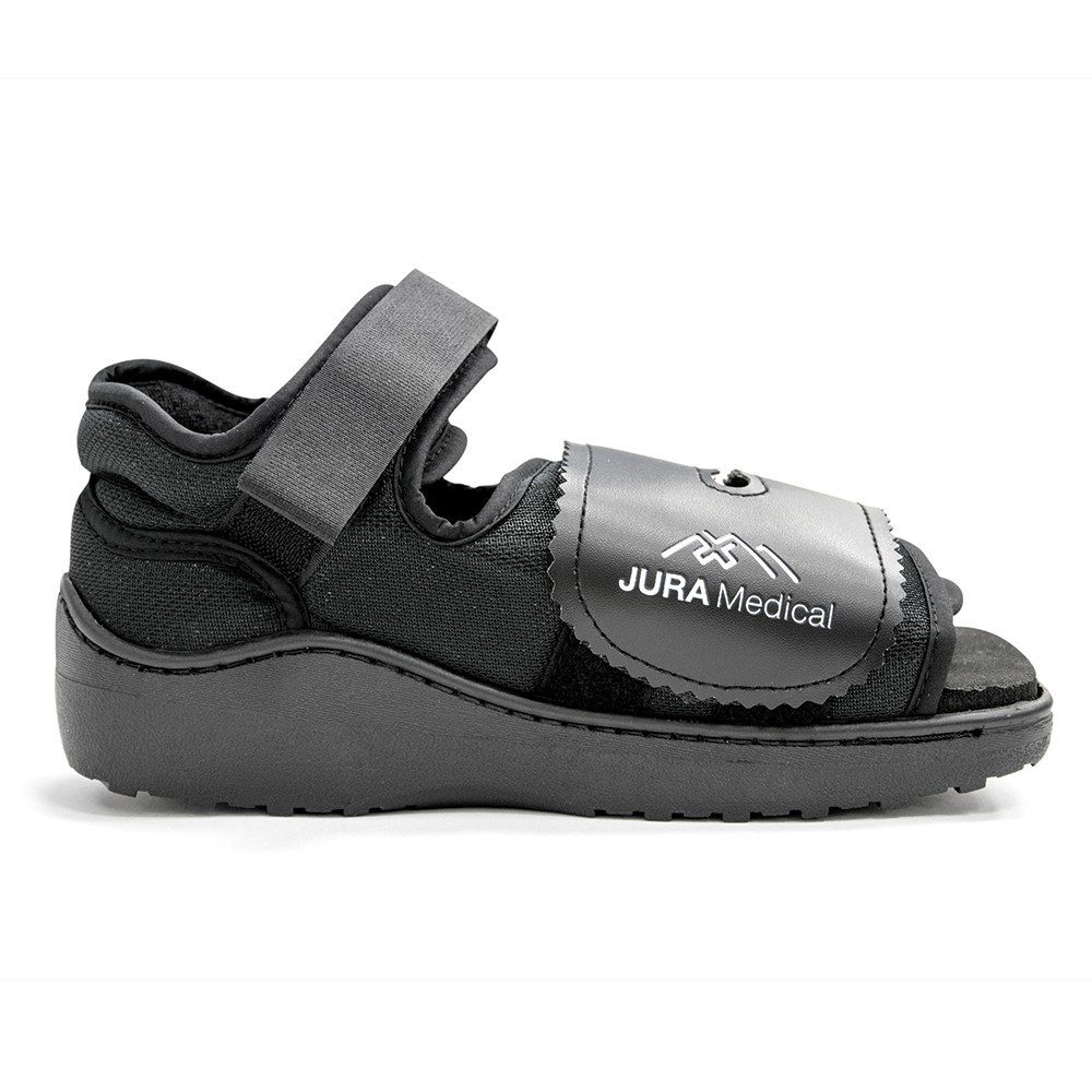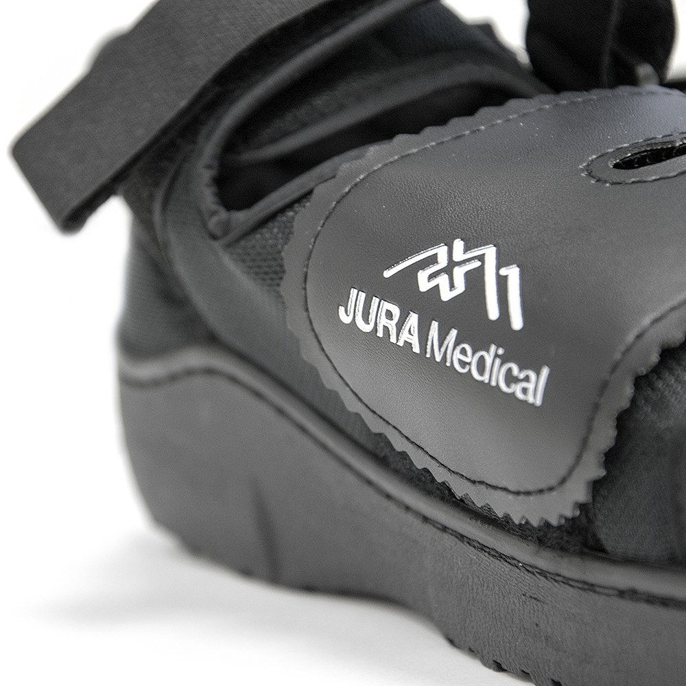 Υπόδημα ελαφρού βάρους. Κατασκευή από αεριζόμενο ύφασμα με εσωτερική υποαλλεργική επένδυση. Ακαμπτη αντιολισθητική και πολυστρωματική σόλα, απορρόφησης των κραδασμών. Πελματιαία μαλακή επένδυση, πρόσθιοι ελαστικοί ιμάντες μεγάλου μήκους, για ογκώδεις επιδέσεις. Πλένεται. Αμφιδέξιο.