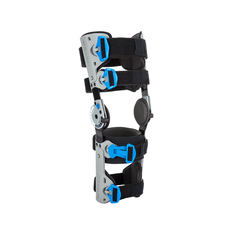 O λειτουργικός νάρθηκας γόνατος Rebound Post-Op Knee της Ossur διαθέτει γωνιόμετρο για την ελεγχόμενη εμβέλεια κίνησης για το γόνατο, ενώ είναι εύκολο στην εφαρμογή. Κατάλληλο για όλα τα μεγέθη, απο παιδικό έως ενηλίκων. Παρέχει ασφαλή και άνετη εφαρμογή στους χρήστες. Είναι ενας μη-επεμβατικός νάρθηκας που μπορεί να χρησιμοποιηθεί για έναν μόνο ασθενή. Ωστόσο, εαν τηρηθούν οι κανόνες υγιεινής, όπως ορίζονται στις οδηγίες χρήσης, μπορεί να χρησιμοποιηθεί και σε άλλον ασθενή. Εφαρμόζεται κατευθείαν πάνω στο δέρμα. Δεν είναι αποστειρωμένος. Διατίθεται με ή χωρίς kit εφαρμογής. Η διάρκεια ζωής του νάρθηκα ορίζεται στους 3 μήνες συνεχούς εφαρμογής. Είναι εύκολος στην εφαρμογή και τη ρύθμιση καθώς οι ιμάντες διαθέτουν κωδικοποιημένα κουμπώματα και clips, ώστε να καθοδηγήσουν το χρήστη στην εφαρμογή. Ο νάρθηκας είναι ελαφρύς με μαλακή επένδυση ώστε να είναι πιο άνετος.Διαθέτει αρίθμηση στο σκελετό, η οποία διευκολύνει την εφαρμογή. Οι ιμάντες το σταθεροποιούν και τα εσωτερικά μαξιλάρια εξασφαλίζουν καλύτερη εφαρμογή.