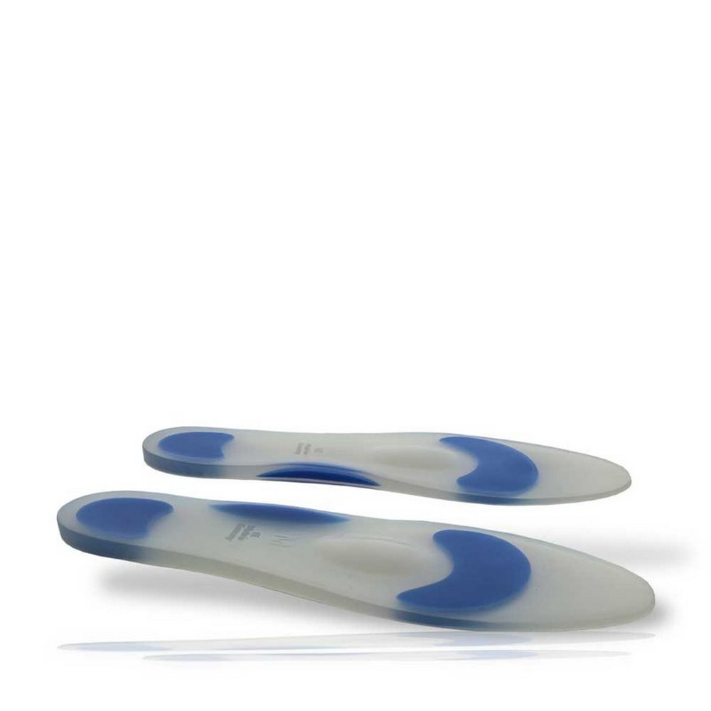 Χάρη στην σιλικόνη υψηλής αντοχής τα πέλματα αποφορτίζουν τα σημεία που δέχονται μεγαλύτερη πίεση κατά το βάδισμα και κατά την ορθοστασία. Οι μπλε περιοχές είναι κατασκευασμένες από μαλακότερη σιλικόνη. Απορροφά τους κραδασμούς στα σημεία που δέχονταν μεγαλύτερη πίεση και προσαρμόζεται σε κάθε τύπο πέλματος.